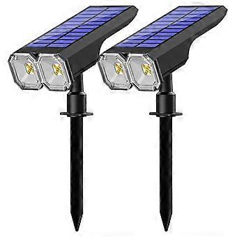 2 Pcs Solar Spot Lights Outdoor IP65 Waterproof, 90° Adjustable, USB and Solar Charging for Garden, Pathway, Patio