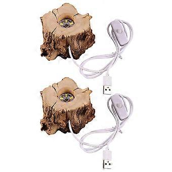 LED Crystal Ball Stand Wooden Base for Display 2Pcs USB Powered Light
