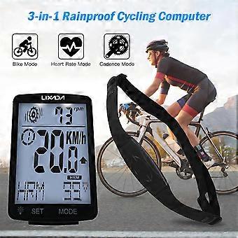 LIXADA 3 in 1 Wireless Bike Computer Multi Functional LCD Screen Bicycle Computer with Heart Rate Sensor Mountain Bike Speedometer Odometer IPX7 Water
