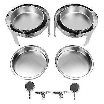 Lot de 2 réchauds ronds en acier inoxydable avec couvercle enroulable pour buffet traiteur, pour banquet