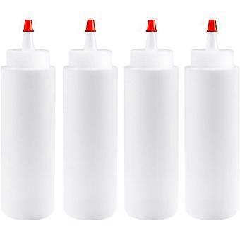Lot de 4 bouteilles de sauce presser, 250 ml, bouteille condiments rutilisables avec bouchon rouge, bouteilles distributrices en plastique pour pein