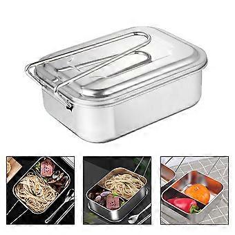 Lunch Container Stainless Steel Lunch Box Metal Food Storage Office Use 20x17 Cm Square 1Set