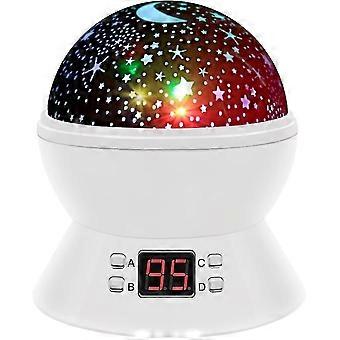 Starry Sky Night Light Projector - Transform your child's room into a magical universe with our Rotating Night Light Projector. This enchanting LED star night light features a convenient timer that allows you to set the sleep duration from 5 to 95 minutes, ensuring your little ones drift off to sleep peacefully without worrying about when the lights will turn off. 2 Power Modes: Choose between two power options for ultimate convenience. Use 4 AAA batteries (not included) for portability, or connect via a USB cable to a wall adapter, laptop, or power bank (USB plug not included) for a more energy-efficient solution. Our latest generation of power beads provides a brighter, more vibrant projection with an expansive range. Stimulate Your Child's Imagination: This popular star projection lamp allows children to experience the beauty of a starry sky from the comfort of their home. It sparks their imagination and curiosity about the universe, making bedtime a delightful adventure. Compact Size: Measuring 13.7 x 15 cm, this night light is the perfect addition to any child's bedroom decor. Create a soothing atmosphere that promotes relaxation and sweet dreams with our Starry Sky Night Light Projector.