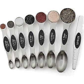 Magnetic Measuring Spoons Set, Dual Sided, Stainless Steel, Fits In Spice Jars, Set Of 8