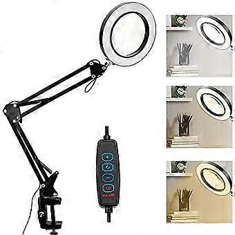 Magnifying Glass with Light and Stand 10X Real Glass Lens 3 Color Modes 10 Brightness Adjustable Magnifying Desk Lamp with Clamp and Base LED Magnifie