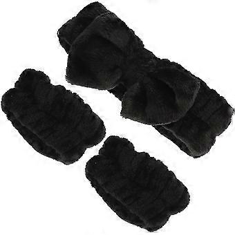 Makeup Headbands Bowknot Headbands for 3Sets Black Elastic Wristbands