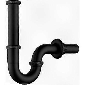 Matte Black Universal Sink Drain with Extended Tube and Wall Mount, 1 1/4 x 32mm U-Shaped Bathroom Basin Waste