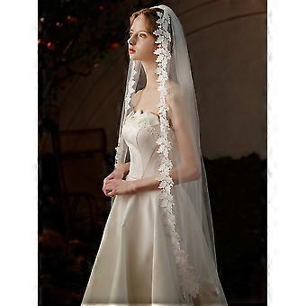 Medium length bridal veil with lace, white, single layer, simple design for wedding