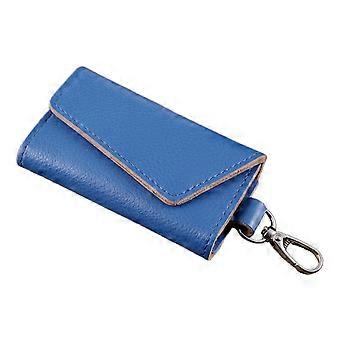 Men Key Holder Leather Car Key Pouch Zipper Keys Storage for Daily Use Blue 1Pcs