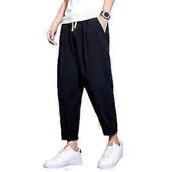 Men Ninth Pants Thin Side Pockets Elastic Waist Wide Japanese Style Drawstring Leg Solid Color Retro Gym Traning Jogging