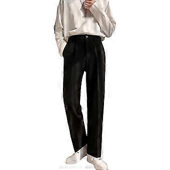 Men Suit Pants Wide Leg Loose Elastic Waistband Style Formal Business Straight Side Pockets Button Zipper Closure Solid Color