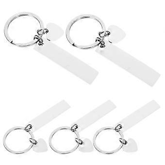 Metal Blank Keychains Rectangle Pendant Diy Silver Color 5Pcs