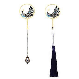 Metal Bookmark With Pendant Chain Tassel For Library Reading Room 19.5X5Cm Page Marker 2Pcs