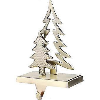 Metal Christmas Stocking Holder Featuring a Christmas Tree and Reindeer Design for Displaying Stockings on Mantel, Fireplace, and Holiday Pa