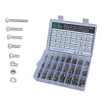 Metric Screws Assortment Kit Machine Screw Nuts Bolts Flat Washers Home Use 304 Stainless Steel 1080Set