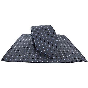 Michelsons of London Small Flower Tie and Pocket Square Set - Grey