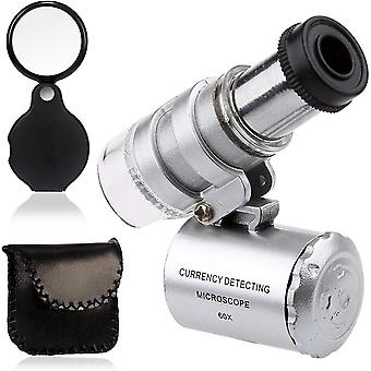 Mini 60x Microscope Magnifying With Led Light Pocket Jewelry Magnifier Jeweler Loupe With 10x Folding Pocket Magnifier