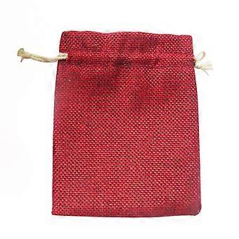Mini Burlap Drawstring Bags 10Pcs Rectangular Shape For Women Jewelry Makeup Sweets Red Color Storage