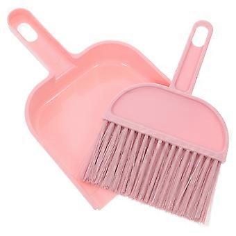 Mini Desktop Sweep Broom and Dustpan Set for Cleaning with Brush Pink