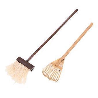 Mini Dollhouse Garden Tool Set Wood Rake and Mop for Decor 4Pcs