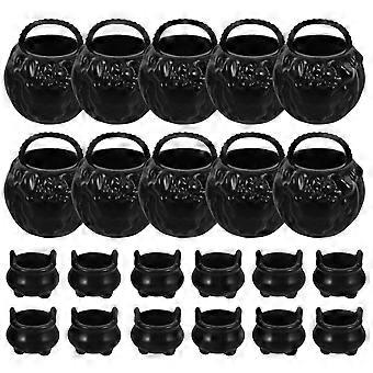 Mini Halloween Cauldron & Witch Bucket Set – Black Miniature Decor for Dollhouse, Desktop & Party – Creative Micro Landscape Ornament