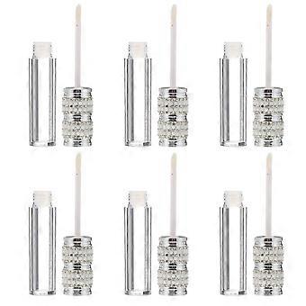Mini Lip Gloss Tubes Refillable Lip Color Containers for Cosmetic Packaging Silver Abs Material with Brush Head Attached 6Pcs
