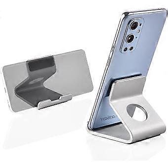 Mini Phone Stand, Phone Stand Table Universal Aluminum and Silicone Portable Smartphone Stand Table Compatible with iPhone, Galaxy, Mate etc (Silver)