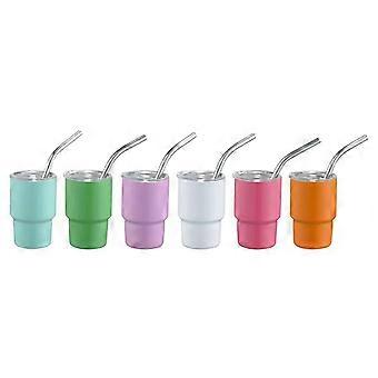 Mini Tumbler Shot Glass with Straw Sublimation Double Layer Metal Cute Shot Glasses Set 3oz with Li