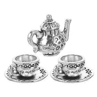 Miniature Tea Set Iron Teapot for Decoration 5Sets Silver DIY Display Model