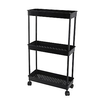 Mobile Shelf Black 3 Tier 15cm Wide Space Saving Widely Used Plastic Steady Rolling Utility Cart for Laundry Bathroom Kitchen Office