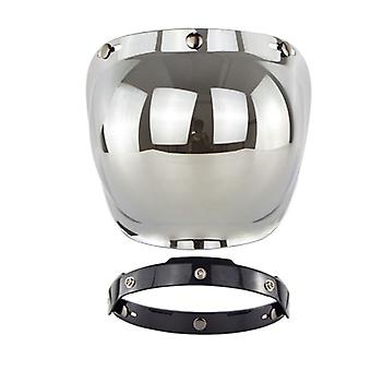 Motorcycle Retro Bubble Shield Visor PC Lens 3 Snap Helmet Windshield with Frame Set Sliver