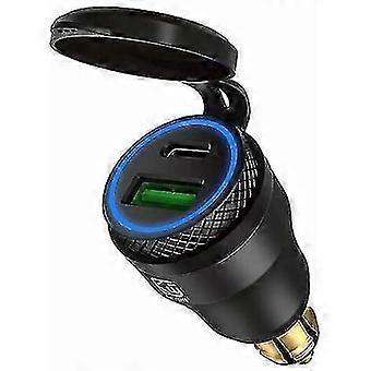 Motorcycle Usb Cigarette Lighter Adapter Dual Usb Socket 12v Pd 3.0 And Qc 3.0 For Bmw Motorcyclelight Blue Black Shell)
