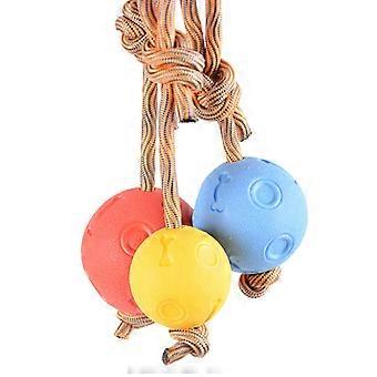 MUJIXI 3 Pieces Dog Ball with Rope, Durable Strong Rubber Ball on a Rope, Perfect for Picking Up, Catching, Throwing and Pulling Rope (6cm)