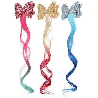 Multi Color Glitter Bow Hair Clips for Girls Easy to Attach Hair Extensions Ideal for Parties and Photos 3pcs Set