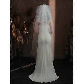 Multi-layered voluminous bridal veil, white, long, simple design for wedding looks
