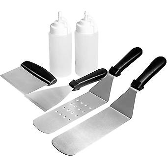 Multi-purpose Bbq Tool Kit 3 Spatulas, 1 Chopper Scraper, 2 Bottles For Blackstone Grill And Griddle,flat Top Grill Camping And Tailgating, 6 Piece