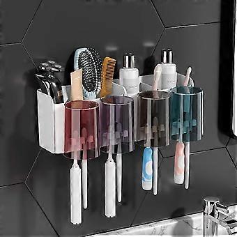 Multifunction Bathroom Storage Rack with 4 Cups+8 Slots Toothbrush Heads Shelf31.6*11*15.3cm