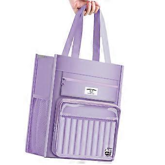 Multifunctional canvas book bag, handcarry briefcase, 8 compartments, document storage bag for students, teachers, officers, purple