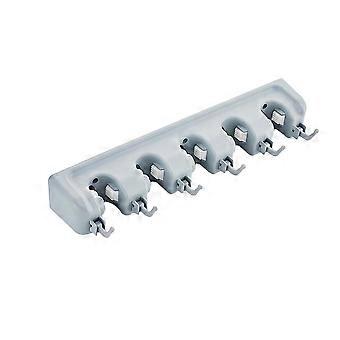 Multifunctional Wall Mounted Mop Brush Broom Holder Hanger Organizer Storage Rack - Grey (5 Position with 6 Hooks)
