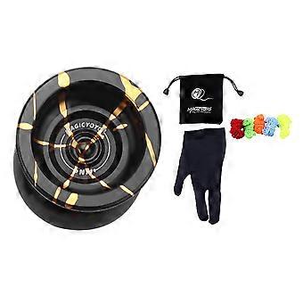 N11 Alloy Aluminum Professional Yoyo Unresponsive Yoyo Ball (Black Golden) Bag, Glove 5 Strings