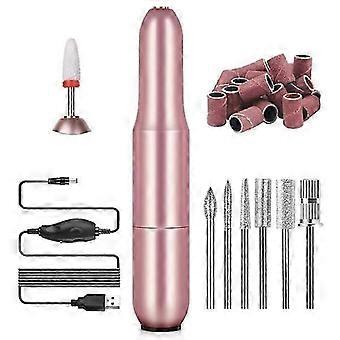 Nail drill set, electric portable cuticle file kit, professional manicure pedicure machine tools for acrylic nails, USB rechargeable