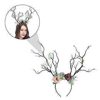 Navy Christmas Hairband with Fabric Elk Design for Festive Decor and Party Accessories 1 piece