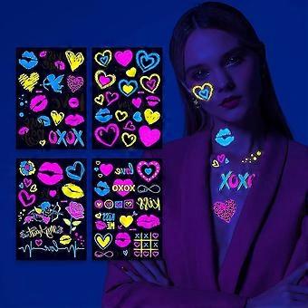 Neon Temporary Tattoo, Assorted Designs Glow In The Dark Neon Temporary Tattoo, Uv Blacklight Fake Tattoos