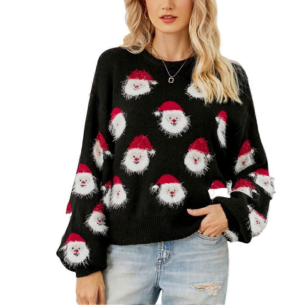 Women's Santa Christmas Sweater Fashion Round Neck Knitted Sweatshirt Long-Sleeve Pullovers