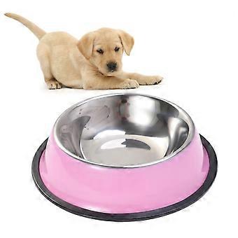 Non Slip Pink Stainless Steel Pet Bowl Rust Resistant Stable Base Noise Reducing Dog Cat Dish For Feeding