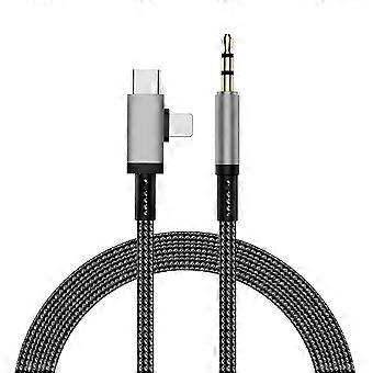 iP+Type-C 2-in-1 Car Audio Cable 1m Plug and Play Nylon Braided Wire with 3.5mm Jack-Tarnish