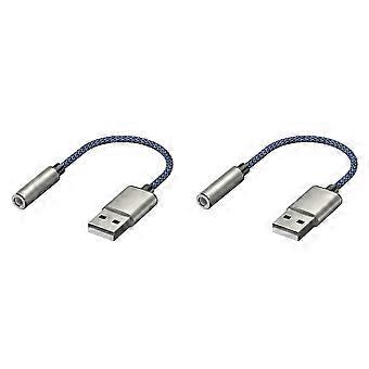 2X USB to 3.5mm Audio Cable USB A to 3.5mm Female External Stereo Sound Card Headphone Micphone Adapter Silver&Blue