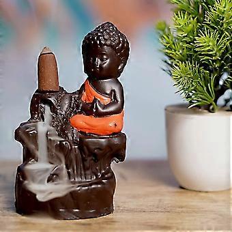 ORANGE BUDDHA With 10 cones, Polyresin Statue B_3 Decorative Showpiece - 8 cm (Polyresin, Brown, Multicolor)