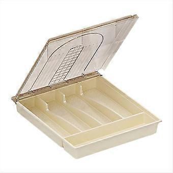 Organizer with Lid,Plastic Cutlery and Flatware Storage Box, D