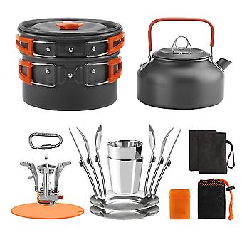 Outdoor Camping Cookware Mess Kit Pot Pan Kettle Cooking Set Tableware with Stove Spoon Fork Cutter